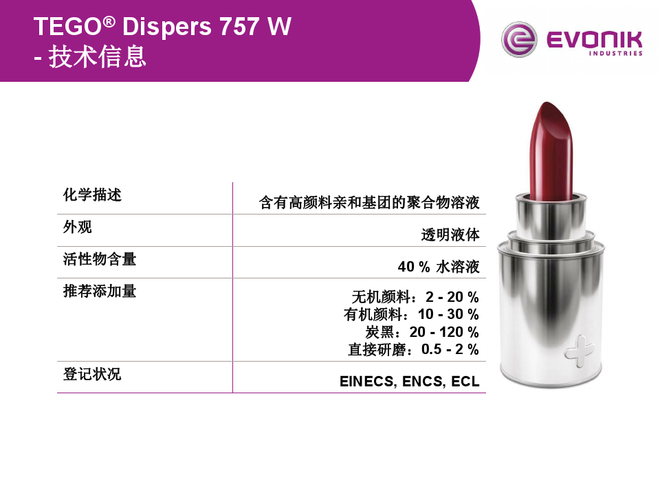 此文關(guān)鍵字:分散劑,迪高分散劑,TEGO,迪高助劑,迪高757,色漿