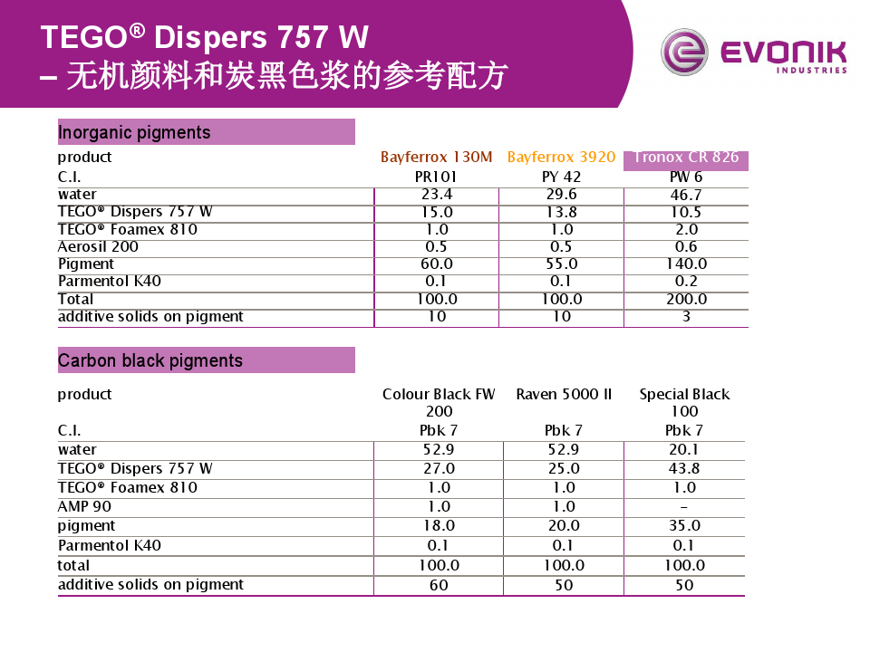 > > > TEGO 757  無(wú)機(jī)顏料和炭黑參考配方 < < <