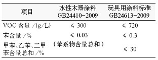 由于玩具直接與人體特別是兒童密切接觸,玩具涂料中有害物質(zhì)主要有重金屬類(lèi)、鄰苯類(lèi)增塑劑和有機(jī)溶劑等三大類(lèi),一旦其中有害物質(zhì)超標(biāo)將會(huì)影響到兒童身體健康。為確保兒童身體健康,我國(guó)首部《玩具用涂料中有害物質(zhì)限量》強(qiáng)制性國(guó)家標(biāo)準(zhǔn)GB24613-2009將于2010年10月1日起正式實(shí)施。由于水性木器涂料能夠做到不含鄰苯二甲酸酯、總鉛及可溶性重金屬符合標(biāo)準(zhǔn)要求,且VOC、苯系物含量遠(yuǎn)遠(yuǎn)低于GB24613-2009限量指標(biāo),2個(gè)標(biāo)準(zhǔn)對(duì)比見(jiàn)表2。