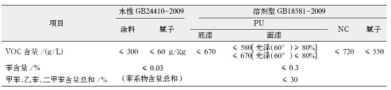 注:GB24613-2009中VOC和苯系物含量限量標(biāo)準(zhǔn)規(guī)定僅適用于溶劑型涂料,沒(méi)有規(guī)定水性涂料。