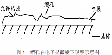 我國自80 年代以來,已大量研究應(yīng)用,現(xiàn)已初步形成了一個較完整的體系,但涂料不管采取何種涂裝手段,經(jīng)施工后,均存在溶劑蒸發(fā)、聚合物流動的成膜過程,由于溶劑蒸發(fā)、聚合物與基材的潤濕程度不同往往造成漆膜出現(xiàn)張力梯度,從而導(dǎo)致漆膜出現(xiàn)皺紋和縮孔,一旦出現(xiàn)這種現(xiàn)象,則漆膜的裝飾性及漆膜的耐水性、耐溶劑性均會下降。國內(nèi)外較多地進行了縮孔形成機理的研究,研究認為:涂膜縮孔的形成與其自身的流平性關(guān)系甚大。通過大量的實踐,在電子顯微鏡下觀察,不難發(fā)現(xiàn)涂膜的縮孔,可以看到絕大多數(shù)的縮孔都是由很少部分未被充分潤濕的顆粒與周圍不相容的樹脂所形成的旋渦狀結(jié)構(gòu),如圖1 所示。