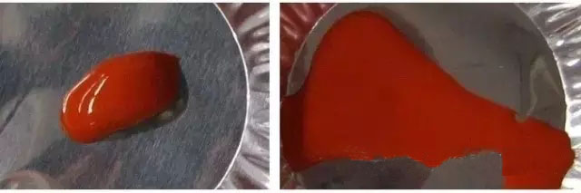 5.減少絮凝,增加施工性和使用性。許多人在評(píng)估分散劑時(shí),都會(huì)做指研試驗(yàn)。如果分散劑搭配不恰當(dāng),指研的區(qū)域與未指研的區(qū)域會(huì)產(chǎn)生明顯的色差。絮凝后的顏料著色力會(huì)下降,這給調(diào)色及涂料施工都帶來困難。采用流板試驗(yàn),也能觀察到色漿的絮凝與否。